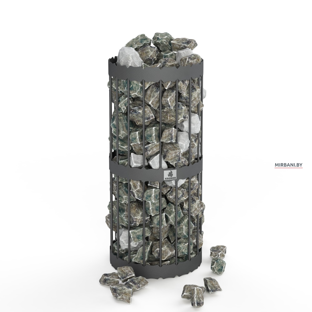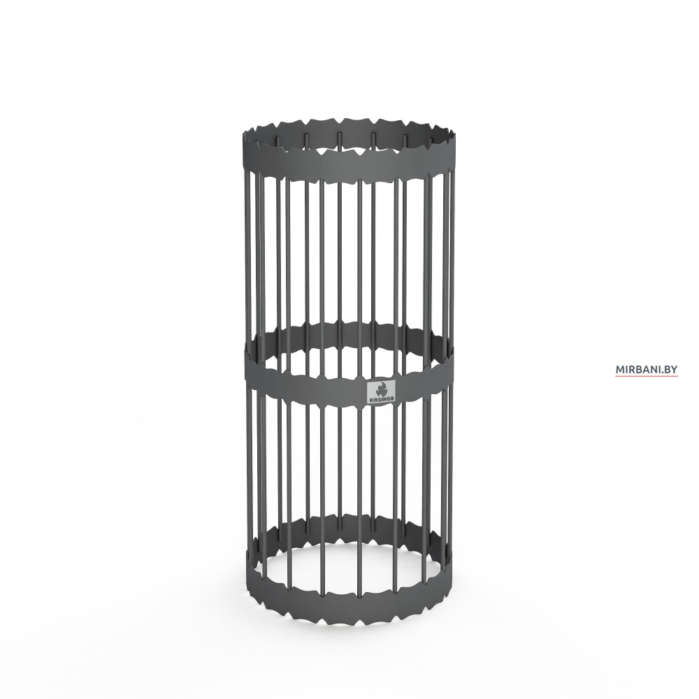 Сетка для камней одевается на одностенную трубу банной печи внутри парилки. Засыпется камнем для бани. Камень,как правило малиновый кварцит,так как он нагревается быстрее всех остальных камней.