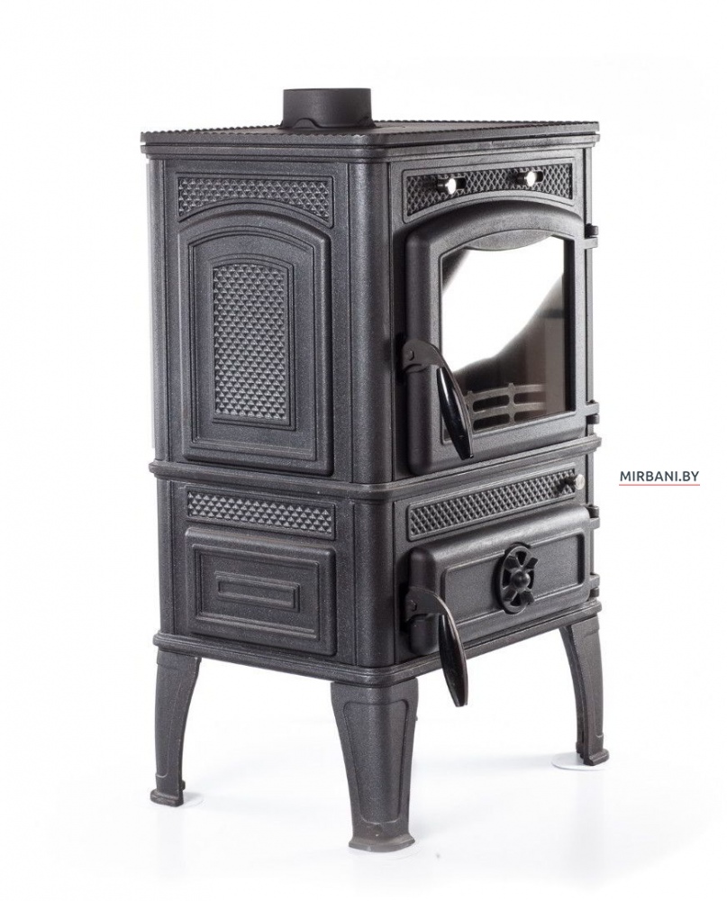 Обогрев помещения происходит конвекционным воздухом, излучением от внешних чугунных стенок и стекла. У печи чёткие, отзывчивые регулировки интенсивности горения. На верхней крышке есть съёмная панель для чистки печи от сажи.