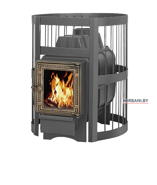 Банная Чугунная печь ЛЕГЕНДА Стандарт 16 ДТ-4С Б/Вукомплектована топочной чугунной дверцей с жаропрочным стеклом и конвекционно-вентилируемым кожухом изготовленным из калиброванного прута диаметр 6 мм. Печь-сетка с большой загрузкой камней, печь топится из парного помещения. Большая масса камней позволяет надолго сохранять тепло после угасания огня в топке печи, также камни экранируют инфракрасное излучение исходящее от раскаленной топки печи.
