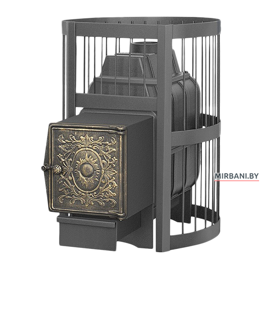 Банная чугунная печь Везувий Легенда Стандарт 28 ДТ-4 2017 - печь для парной с объемом от 14 до 28 м.куб. укомплектована топочной глухой чугунной дверцей и конвекционно-вентилируемым кожухом изготовленным из калиброванного прута диаметр 6 мм. Печь-сетка с большой загрузкой камней, выносная топка позволяет протапливать печь из соседнего с парной помещения. Большая масса камней надолго сохранит тепло после угасания огня в топке печи, также камни экранируют инфракрасное излучение исходящее от раскаленной топки печи.