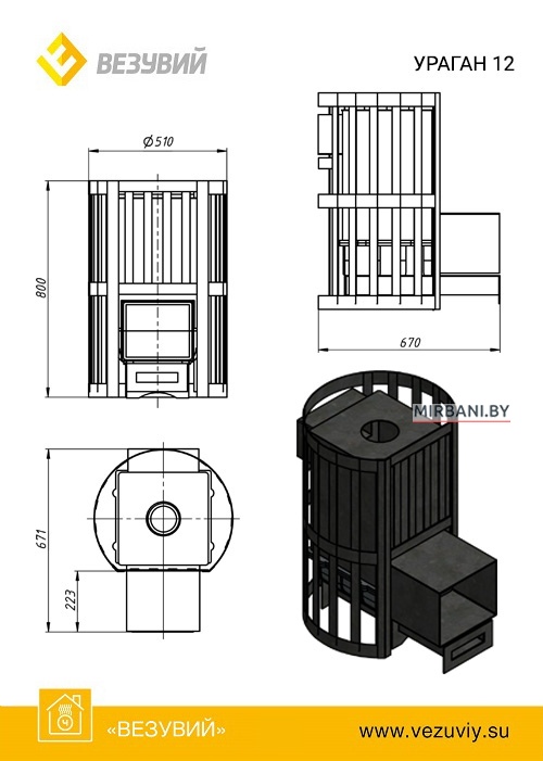 Везувий Ураган Стандарт 16 ДТ-4 с закрытой каменкой